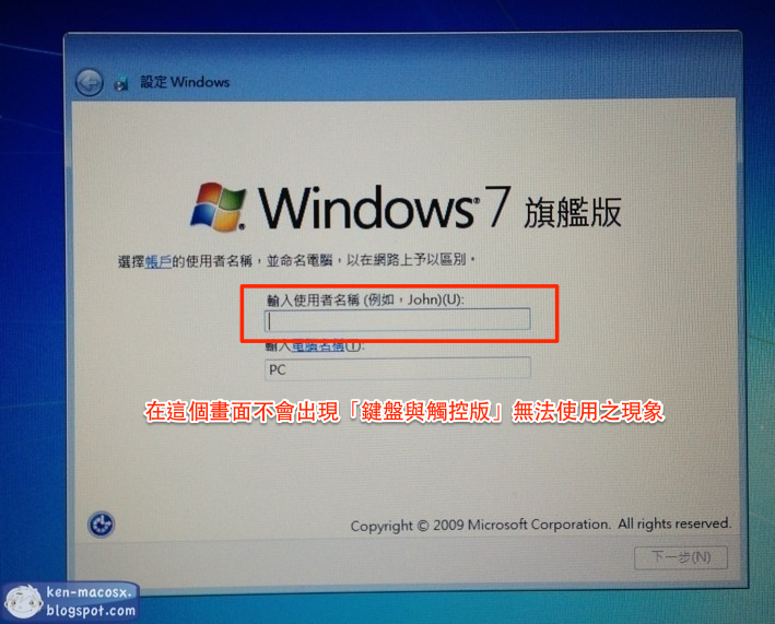 24、到此畫面,輸入您要的名字(不會發生鍵盤與觸控版無法使用,只能重新開機的慘狀