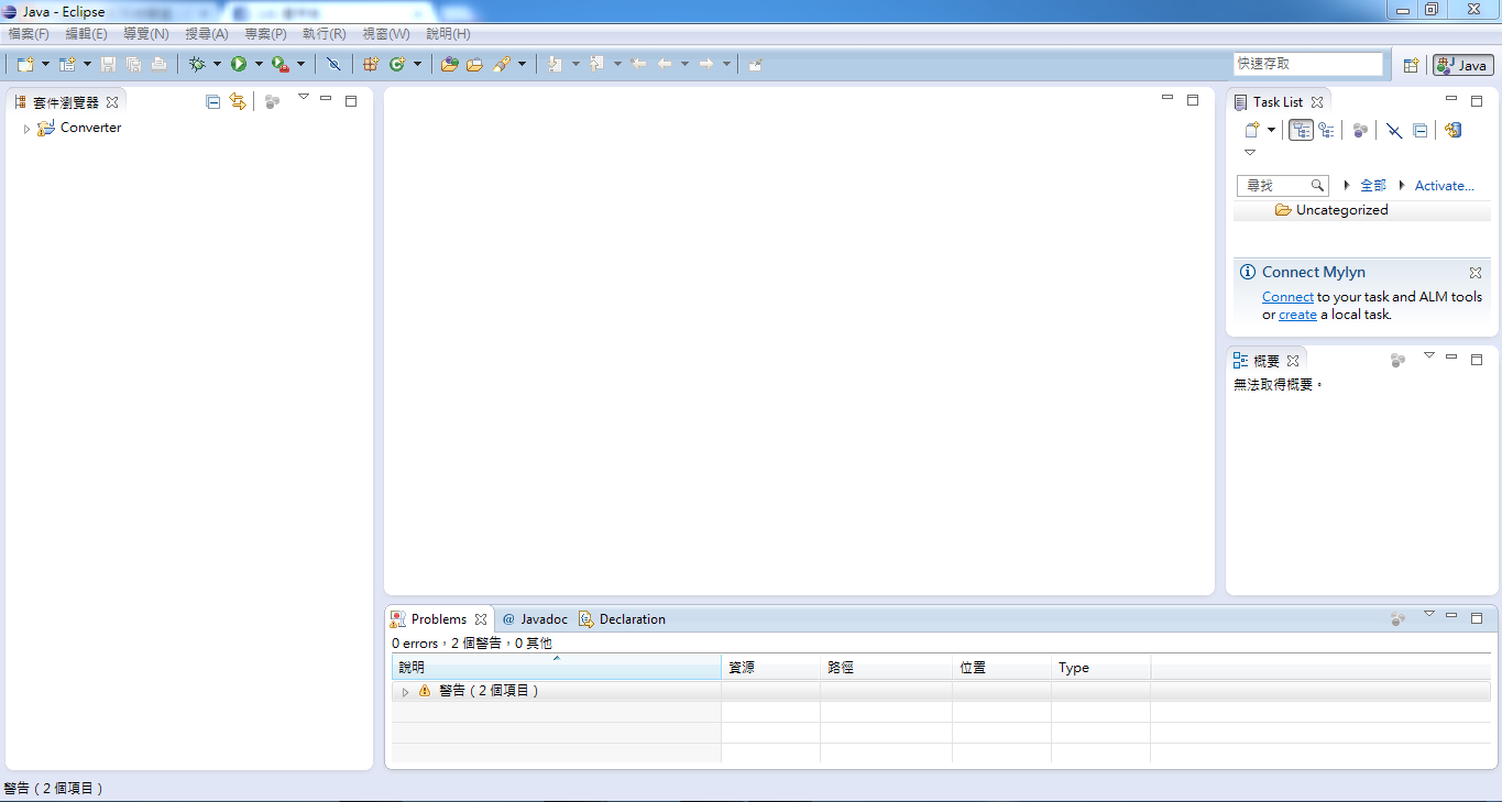 等他下載好,安裝好,他會要你重新啟動eclipse,然後你就會看到中文化的eclipse了!這樣子使用上就沒有太大的障礙了,對吧!