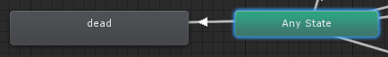 想要立刻執行的動作(例如死亡)可以利用Any State,Any State代表 任何時機點且在任何State之上,所以只要觸發條件成立就會立即執行,但其conditions必須是一次性的命令發送。詳細內容: [Unity] Mecanim 強制進入某個State的方法