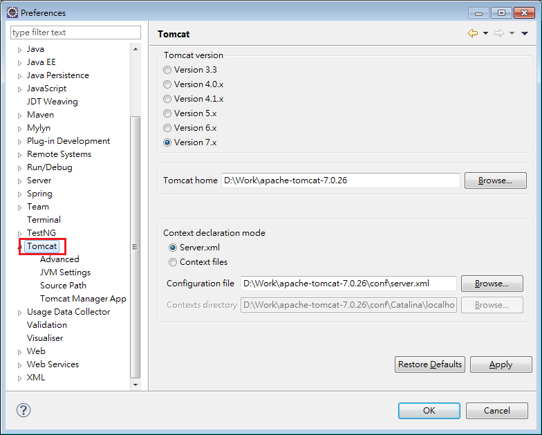 在Eclipse中設定Tomcat Plugin