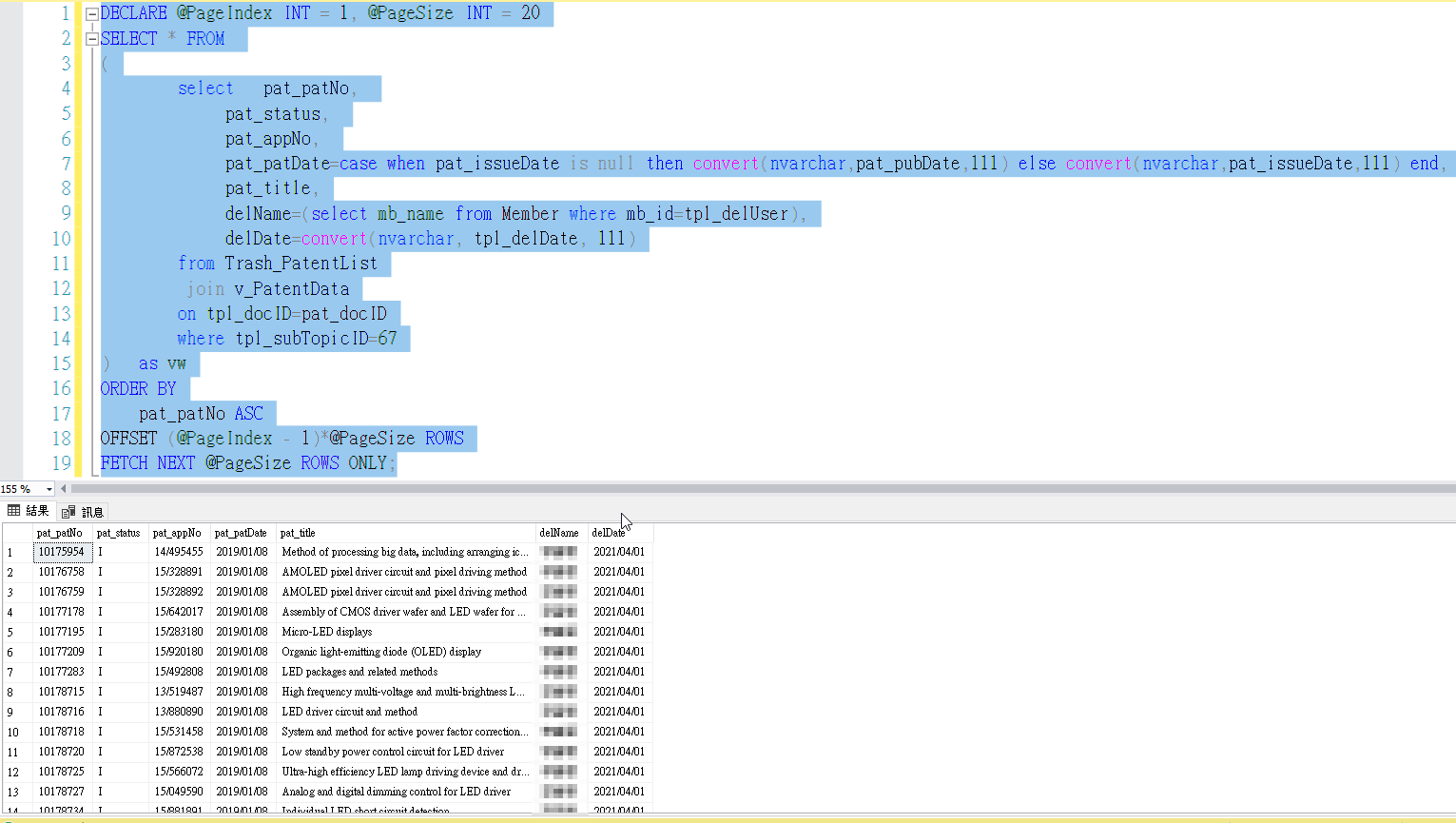 透過以上的語法查詢 Orders 訂單資料表,並且使用 OrderID 訂單號碼由大至小排序,查詢第 101 到 150 共 50 筆的訂單資料。
