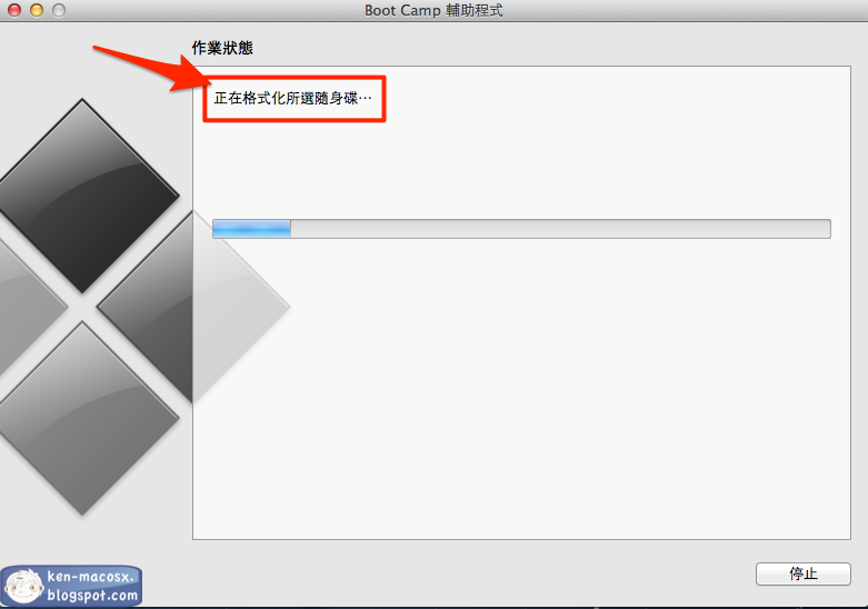 11. 點「開始安裝」開始安裝 Windows 8.1 on Mac,有沒有興奮的感覺阿!(這張的波紋好美)