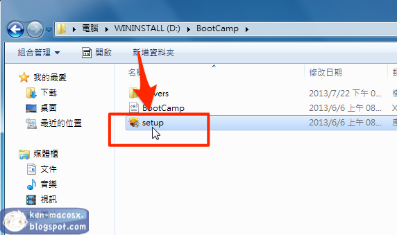 3. 在「BootCamp」資料夾裡面可以找到一個叫做「setup」的執行檔,執行它就對了!