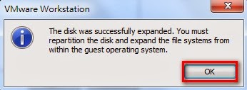 Step3-2:耐心等候後,Expand virtual disk完成後會出現以下訊息,按OK。