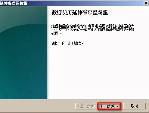 Step5-2:出現延伸磁碟區精靈畫面,按下一步。